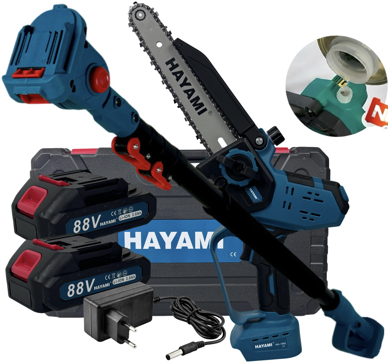 Tato profesionální sada obsahuje mini řetězovou pilu 8" s displejem, praktický transportní kufr, 2 výkonné 88V baterie, nabíječku a teleskopickou tyč. Díky automatickému mazání řetězu je zajištěn hladký chod pily, menší opotřebení a delší životnost nástroje. Celý systém je navržen pro maximální komfort při práci na zahradě.