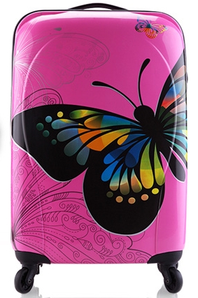 Motýlí kufry jsou úžasná designová záležitost. Doporučujeme je všem ženám, které si cestování chtějízpříjemnit nežným společníkem, který však bude jejich věci bedlivě chránit. Kufr je odolný a připravený na velkou zátěž.Luxusní interiér s oboustranným balícím systémem a oddílem například pro šaty.Skořepina kufru je z lehoučkého nepromokavého ABS. Kvalitního materiálu odolného proti nárazu.Pohodlný transport: 4 silná kola s kvalitními ložisky, otáčejí se o 360°, zaručují velký komfort.Kufr má dvě držadla, čtyři nožky a kvalitní japonská kolečka s ložisky.Dvoucestný zip s očky.Tři zásuvné kapsy.Upínací popruhy do kříže.Kapsa ze síťoviny se zapínáním na zip.Teleskopickou rukojeť lze zajistit ve 3 polohách.Kufr chrání na povrchu ochranná fólie, je vhodné ji před použitím sundat (jinak mohou kufry vypadat jako poškrábané).