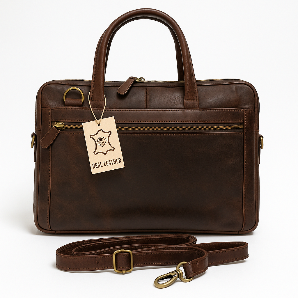 Elegantní kožená taška z pravé hovězí kůže pro každodenní použití do práce, kanceláře i na cesty. Kombinuje klasický vzhled, kvalitní zpracování a promyšlené členění pro bezpečné uložení notebooku či tabletu a příslušenství.