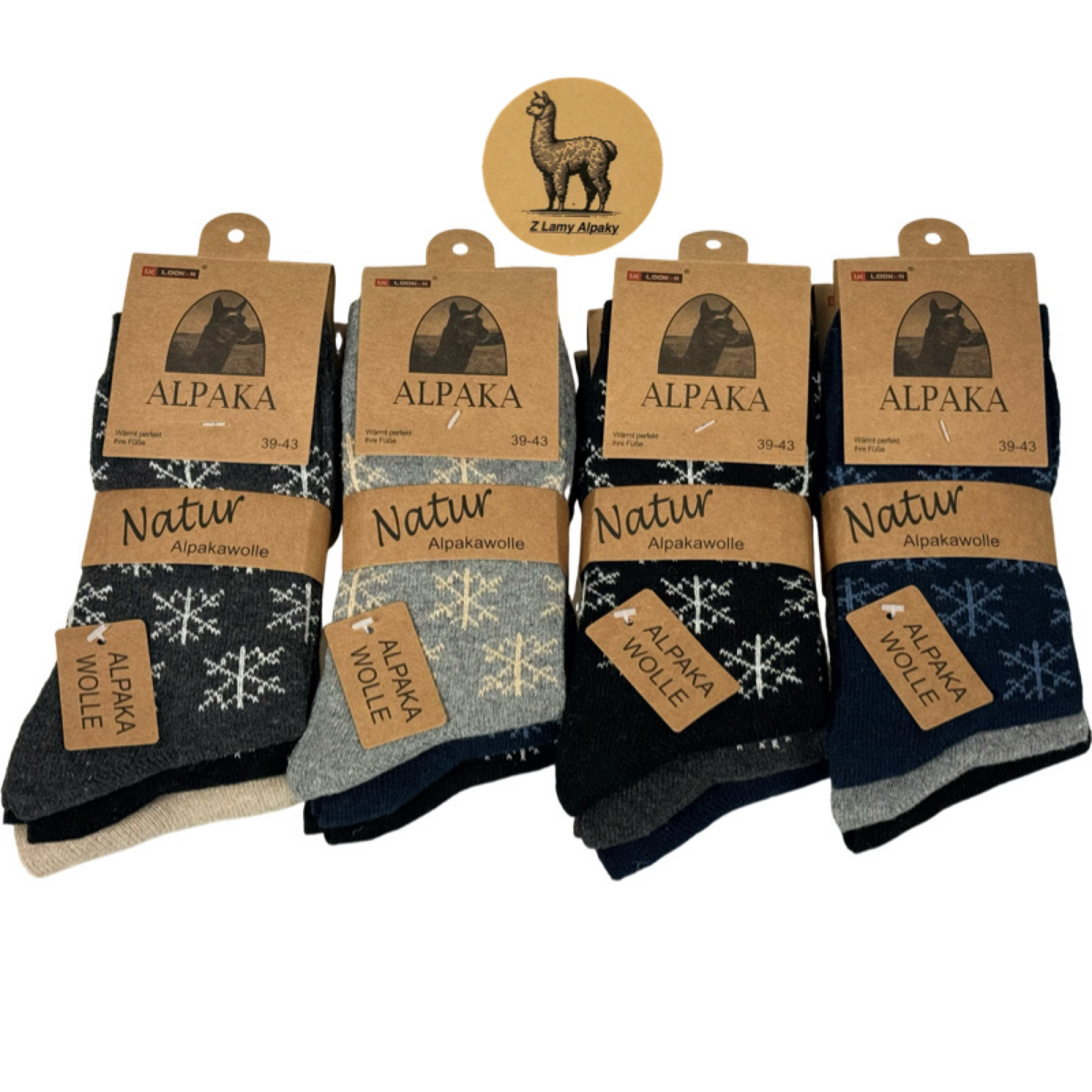 Pánské ponožky z Alpaka vlny – sada 3 párů, tenčí jarní a podzimní s motivem vločky