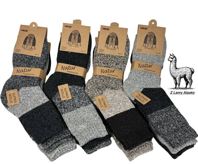Tyto pánské ponožky z přírodní alpačí vlny vás zahřejí i v těch nejchladnějších dnech. Vlna z lamy alpaky je známá svými výjimečnými vlastnostmi – je jemná, hřejivá, prodyšná a navíc hypoalergenní, což ji činí ideální pro citlivou pokožku.