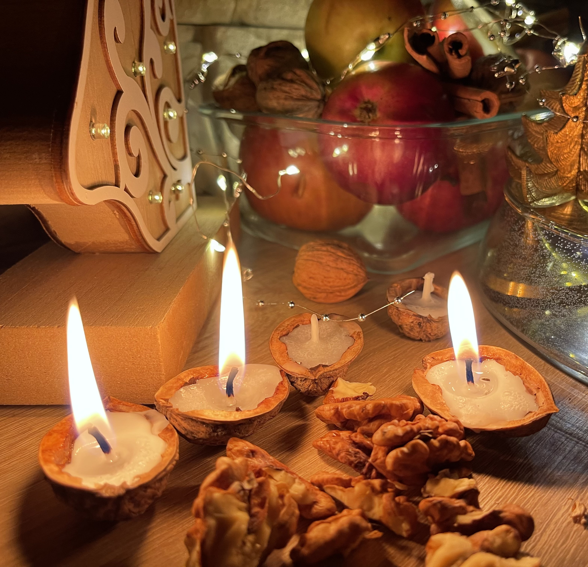 Zkuste ručně vyráběné plovoucí svíčky z vosku a skořápky vlašských ořechů.