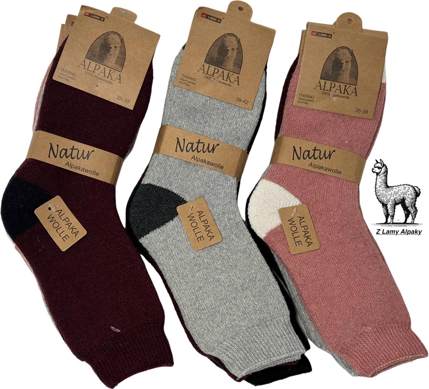 Sada 3 párů termo ponožek z pravé alpačí vlny, navržená pro maximální pohodlí a teplo během zimních dnů. Přírodní a luxusní materiál alpaka zajišťuje jemnost, prodyšnost a dlouhou životnost. Tyto ponožky v elegantních tlumených barvách jsou ideální pro chladné večery, každodenní nošení i jako krásný vánoční dárek. Přineste si do zimy kousek přírody a komfortu.